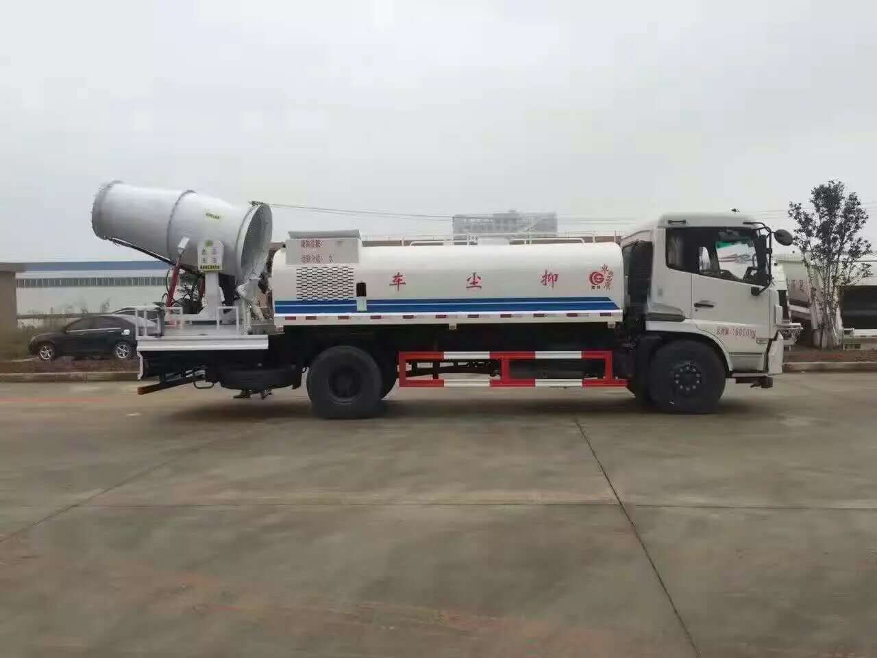 東風天錦降塵車,采用東風商用車底盤定制,配備國五康明斯180馬力國五發動機,900鋼絲輪胎,軸距4700mm,6擋變速箱,280大梁,天錦白色駕駛室,帶原裝空調,帶ABS防抱死系統,斷氣剎。