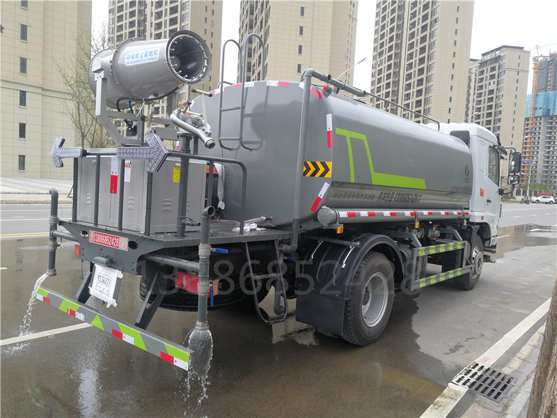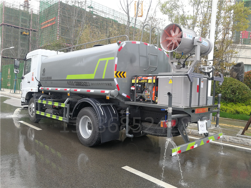 盈通汽車專用功能配置:罐體有效容積11.15立方(實際容積12方)/15噸,采用武鋼4mm 優質碳鋼一次卷壓無縫成型,專用部分配專用灑水泵,帶前沖、后灑、側噴、后工作平臺及灑水高壓炮。配消防接口、自流閥,2根與罐體等長輸水管,水位計,1個爬梯,兩側及后杠。灑水泵自吸高度為7米,出水量為60立方米每小時,灑水寬度大于14米,后工作平臺水炮可調成直沖狀、大雨、中雨、小雨、毛毛雨,直沖射程25米左右,霧狀射程15米左右。(可選配:錳鋼罐體、加粗管道、駕駛室一鍵操作、氣動控制、罐體防腐、高端灑水泵)