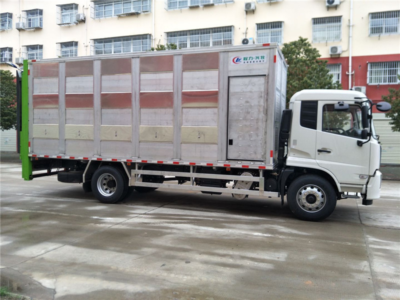 1.廂體鋁合金制作:地面防滑,內部地板以及頂部天花板升降可翻起,方便沖洗;廂體型材采用高強度鋁合金型材,地板防滑花紋板,翻板厚度40mm,頂板為蜂窩保溫板,底盤副大梁為熱鍍鋅鋼材質;