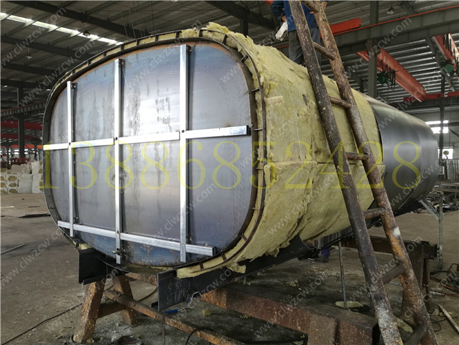 保溫層在制作上主要是在罐體外部先焊接一個支撐骨架,其厚度一般為100mm,然后再用保溫材料把骨架填充滿。在保溫材料的選擇上我們一般考慮導熱系數小,耐高溫,質量輕,吸聲性能好,絕緣性和化學穩定性好的硬質聚氨酷泡沫塑料或巖棉。然后需要對填充的保溫材料進行修正,最后在骨架上撞上蒙板,蒙板一般使用厚度為lmm的冷軋板。