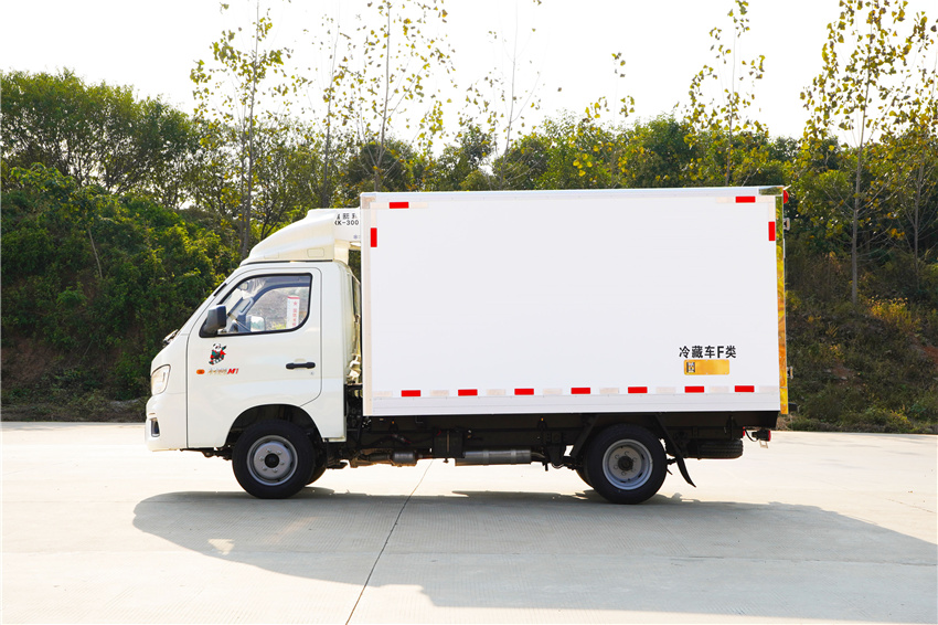 福田祥菱M1冷藏車采用國六汽油東安115馬力(DAM15KR發動機,5變速箱,2750軸距,高配,原廠空調,后雙胎,5檔變速箱,175R14后雙胎,122后橋,ABS,電動助力轉向