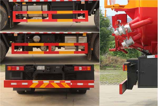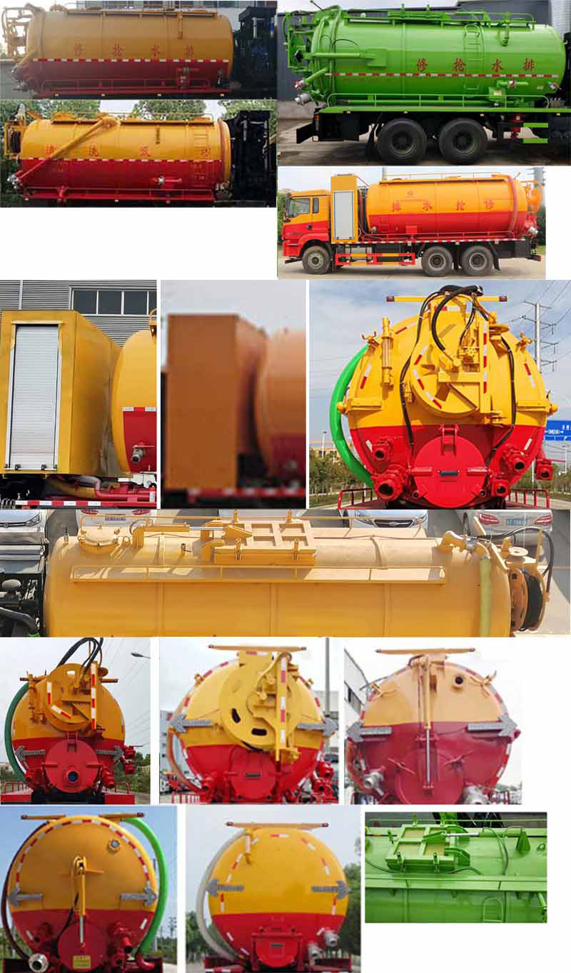 陜汽23方清洗吸污車,德龍23方疏通吸污車,管道疏通車,市政下水道清理車,高壓清洗吸污車,該車主要用于下水道系統的清理和疏通工作;主要裝置為罐體及清洗吸污裝置;罐體尺寸為(總長×直徑)(mm):6050×2150(前部含封頭長2700mm為清水罐,后部含封頭長3350mm為污水罐);污水罐有效容積:9.345立方米,介質:液態污物,清水罐有效容積:7.476立方米,介質:;兩罐獨立,且不能同時滿載,清洗功能時用清水罐,吸污功能時用污水罐,兩個罐體不能同時使用;側、后防護材料均為:Q235碳鋼,連接方式均為:焊接連接,后部防護截面尺寸(mm):200×60,后部防護離地高度(mm):490;ABS系統生產廠家及型號分別為:西安正昌電子股份有限公司(ZQFB-V);.僅采用底盤4375+1400(mm)軸距改裝.選裝側面及后部樣式;選裝罐體頂部結構.隨底盤選裝駕駛室.