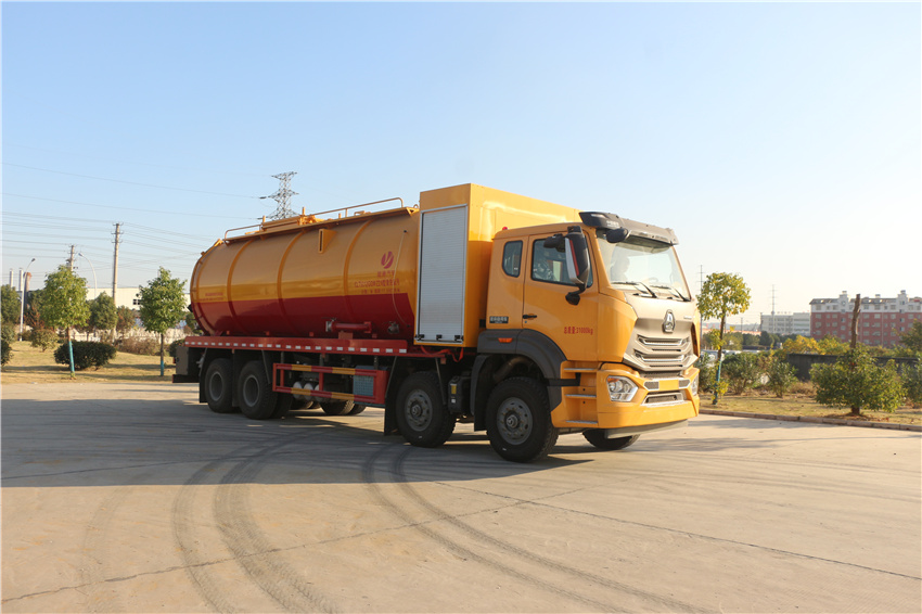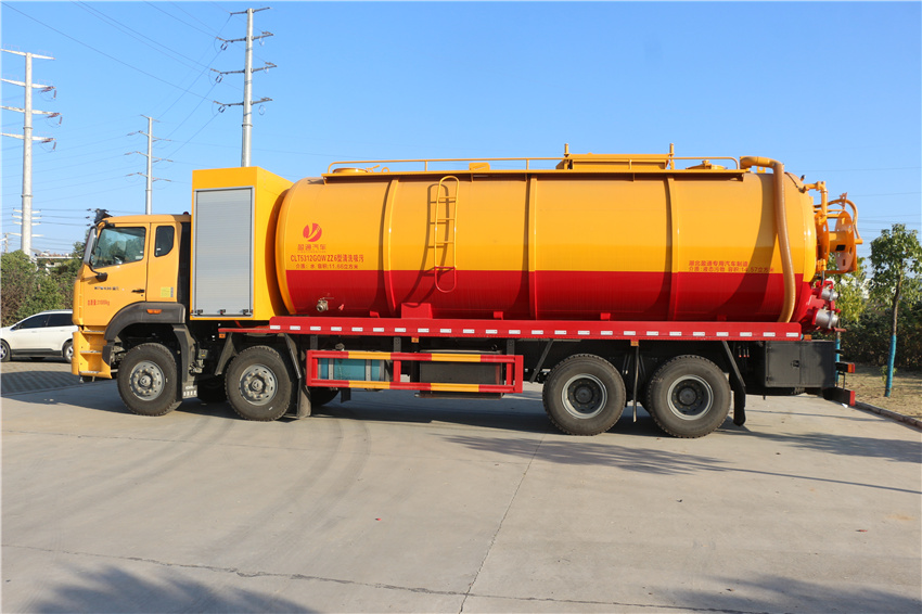 重汽35方清洗吸污車,豪沃35方疏通吸污車,管道疏通車,市政下水道清理車,高壓清洗吸污車,該車專用裝置主要為污水罐和清水罐,用于下水道吸污及疏通。隨底盤選裝駕駛室;罐體尺寸(直段長×直徑)(mm):7100×2350,其中罐體前端為清水罐(直段長3150mm);后端為污水罐(直段長3950mm)。兩罐獨立,且不能同時滿載。清洗功能時用清水罐,吸污功能時用污水罐。污水罐總?cè)萘?/span>14.57立方米,污水罐有效容積13.88立方米,介質(zhì):液態(tài)污物,密度:800千克/立方米;清水罐總?cè)萘?/span>11.66立方米,清水罐有效容積11.1立方米,介質(zhì):水,密度:1000千克/立方米。采用軸距(mm):1800+4600+1350,1800+4575+1400;側(cè)/后防護材料均為:Q235碳鋼,連接方式均為:螺栓連接,后部防護截面尺寸(mm):200×60,后部防護離地高度(mm):480;ABS系統(tǒng)型號為446 004 6300,生產(chǎn)企業(yè)為威伯科汽車控制系統(tǒng)(中國)有限公司。選裝EBS,EBS系統(tǒng)控制器生產(chǎn)企業(yè):威伯科汽車控制系統(tǒng)(中國)有限公司,型號:EBS3。選裝罐體頂部護欄樣式,選裝側(cè)面清洗管,選裝后罐口液壓開啟樣式,選裝后部閥門,選裝后部清洗管卷盤樣式。選裝前部不帶卷簾門保護箱.選裝尿素箱位置,選裝油浴式空濾器,,選裝左置電瓶箱,選裝大油箱,選裝雙腔大油箱,選裝消聲器及位置,選裝踏步,選裝前拖鉤。 |